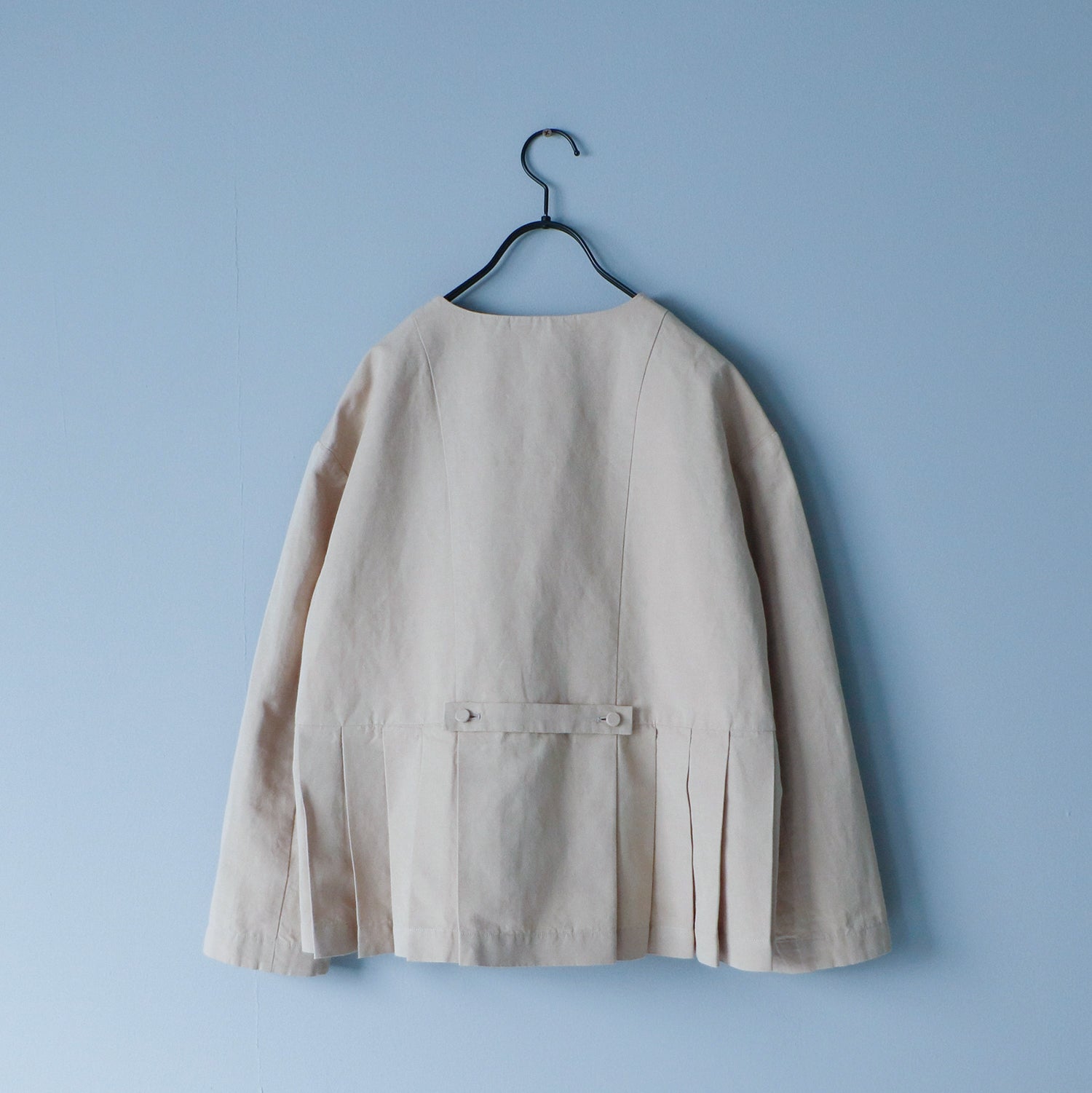 柔らかな陽射しと風を受け止めるように、軽やかで凛とした佇まいのジャケットです。