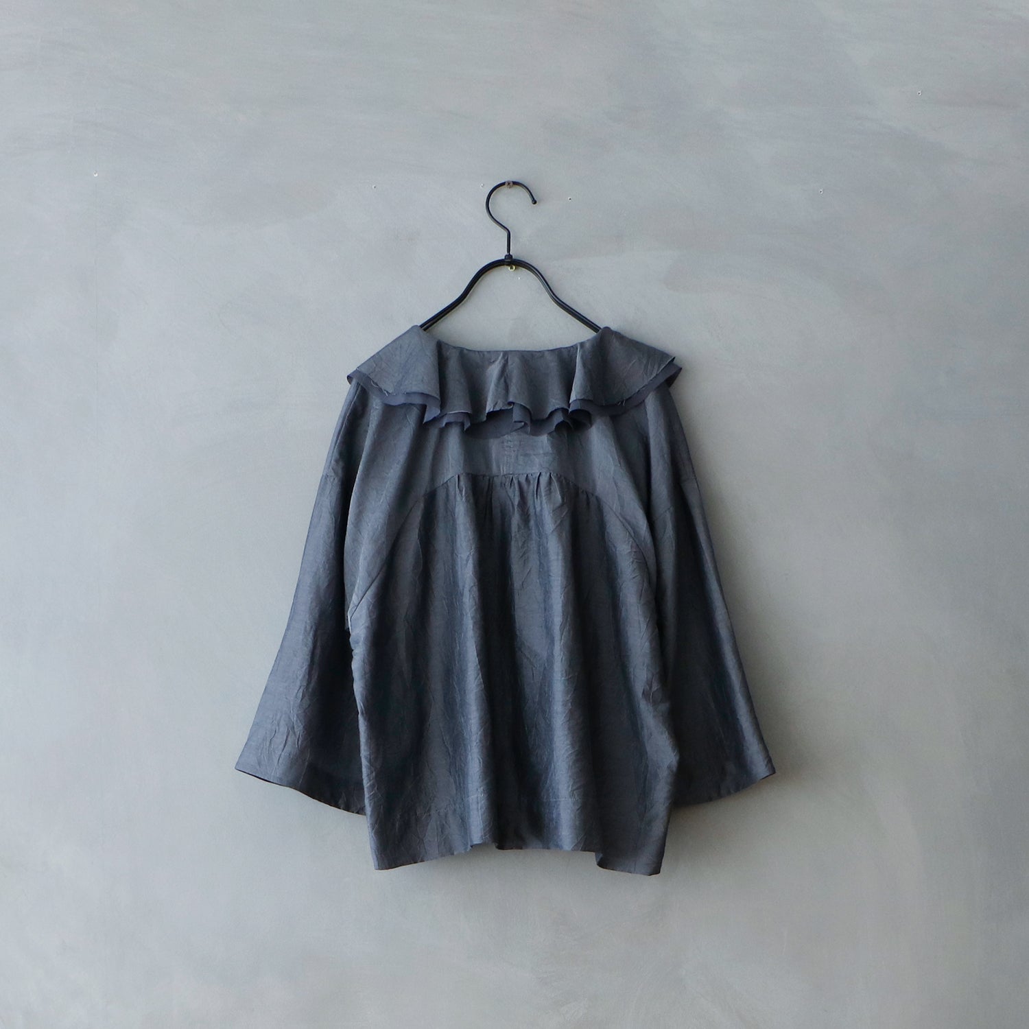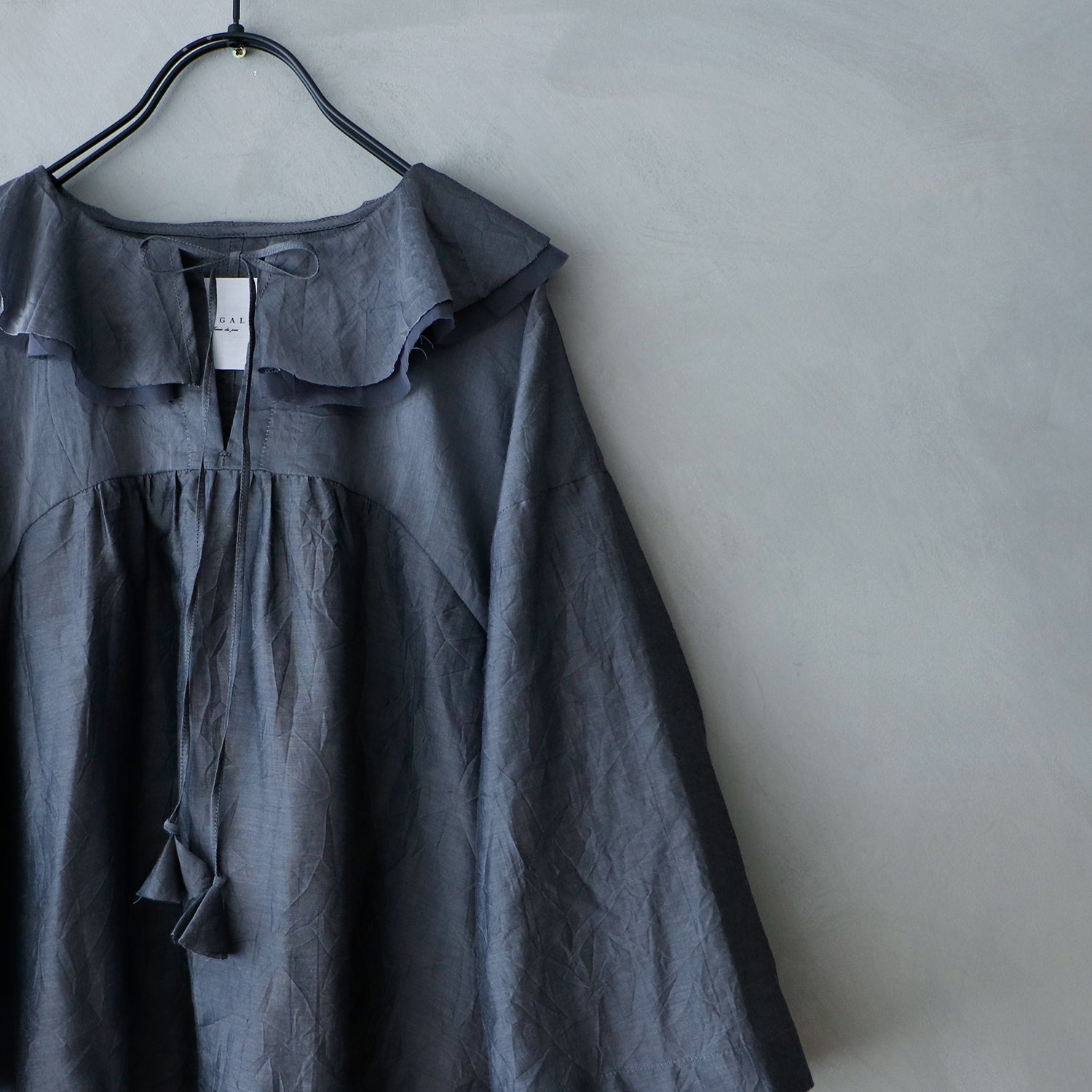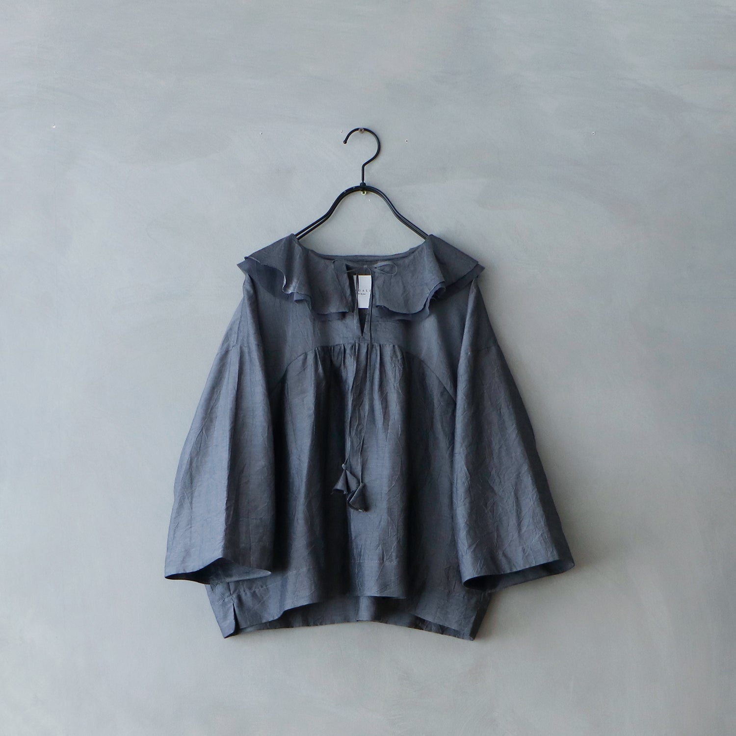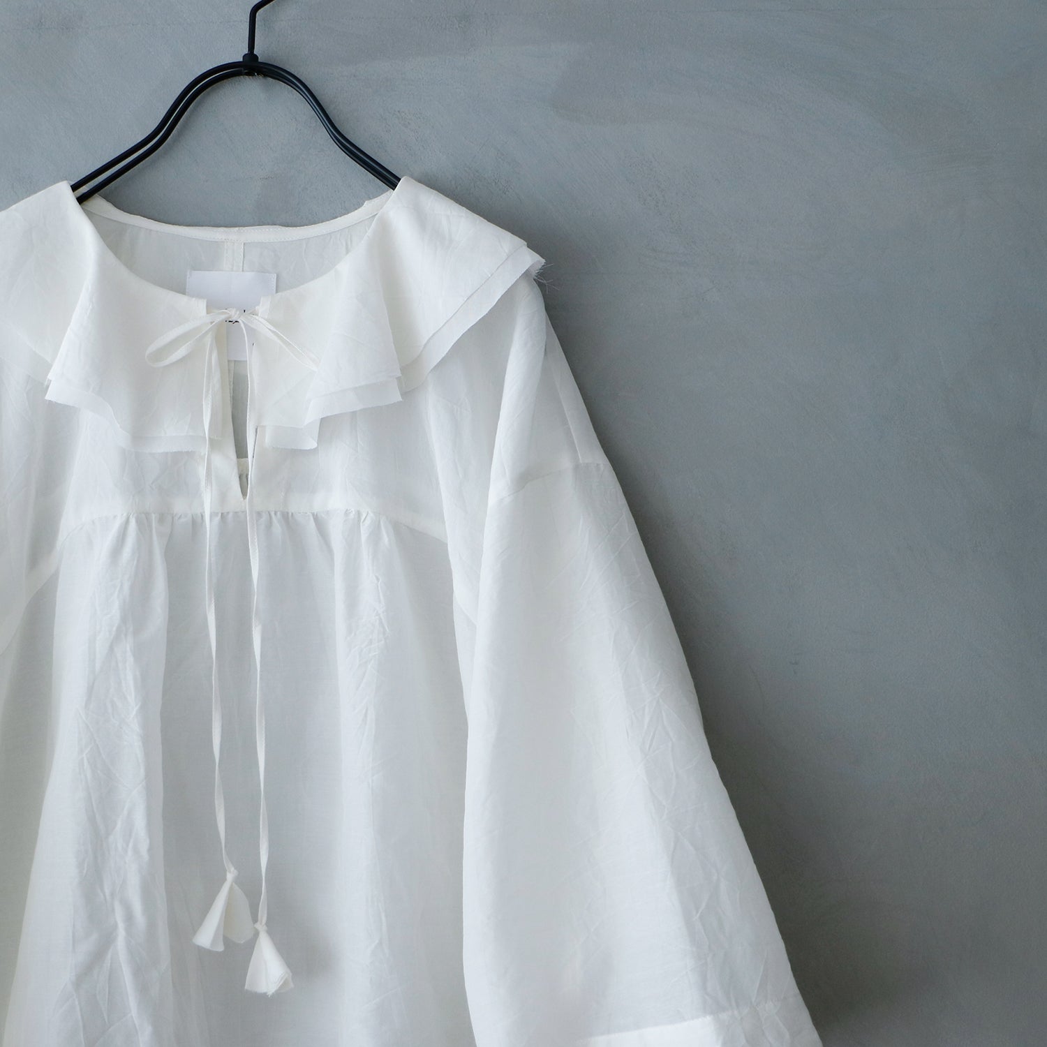 【MAGALI】 コットンシルクブレイド・フリルカラーブラウス
