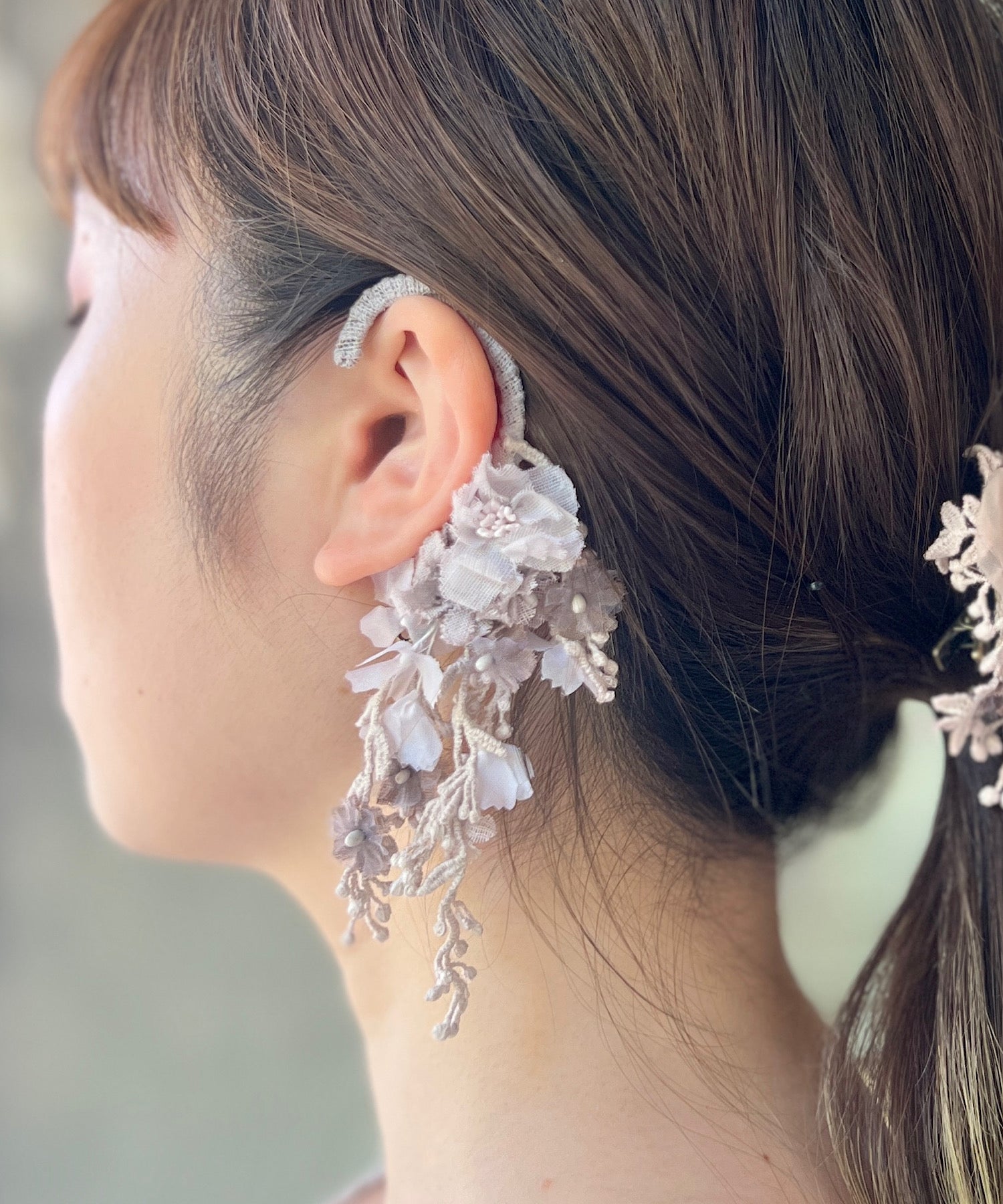 くすみピンクのなでしこイヤーフック