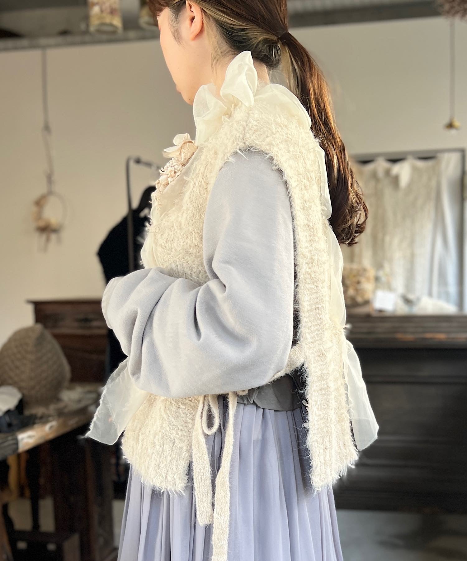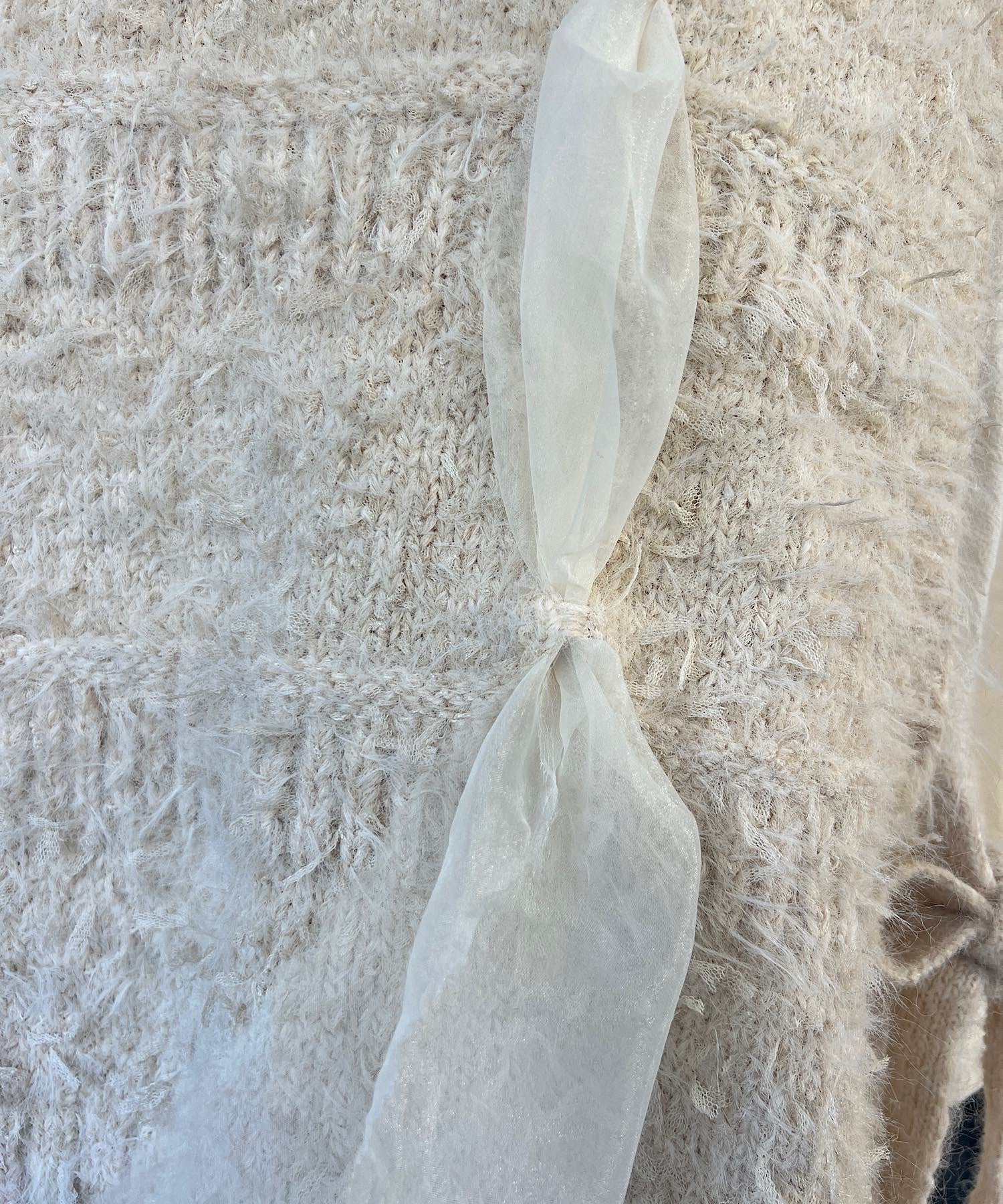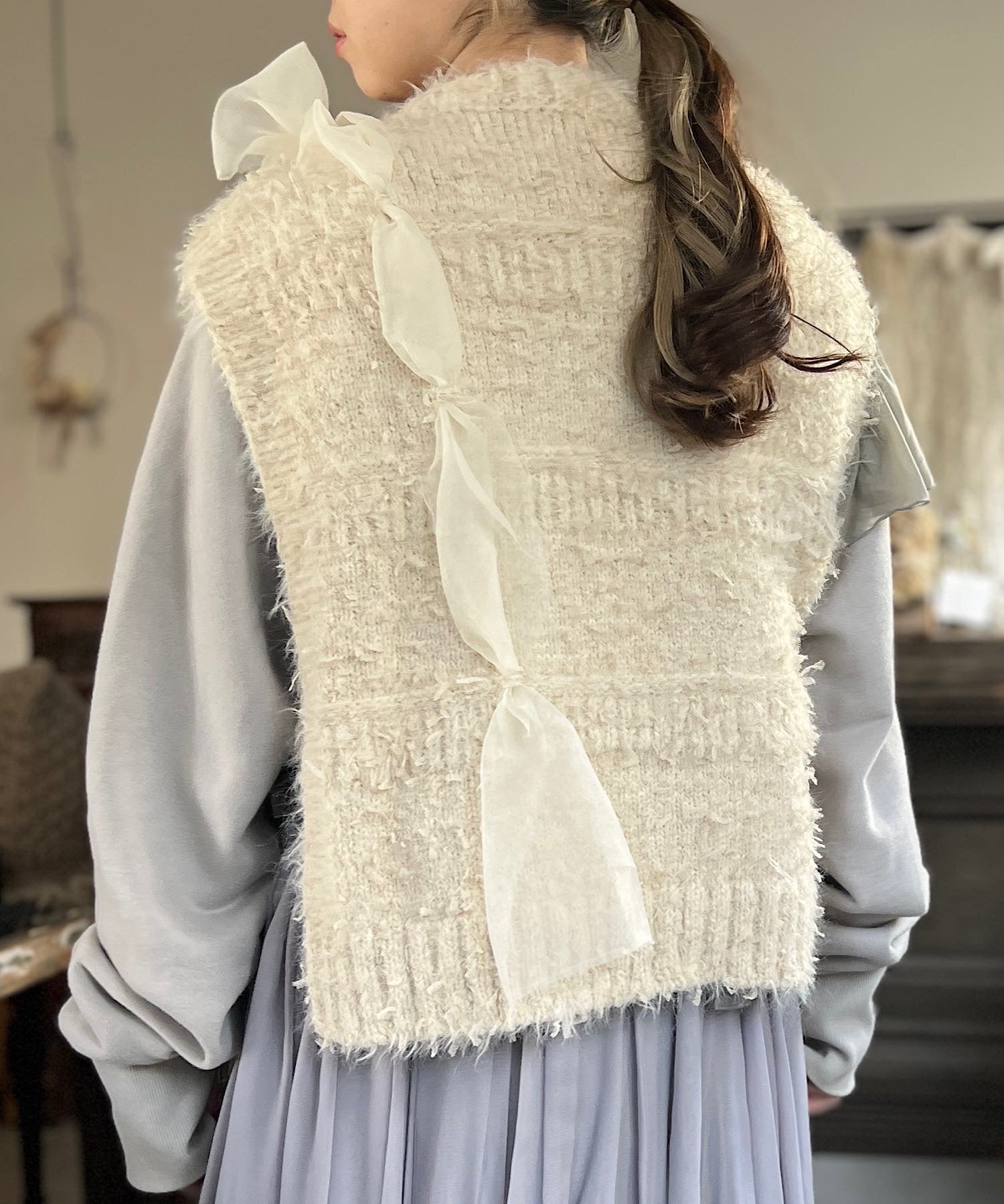 オーガンジーの生地を編み込んだニットベスト。