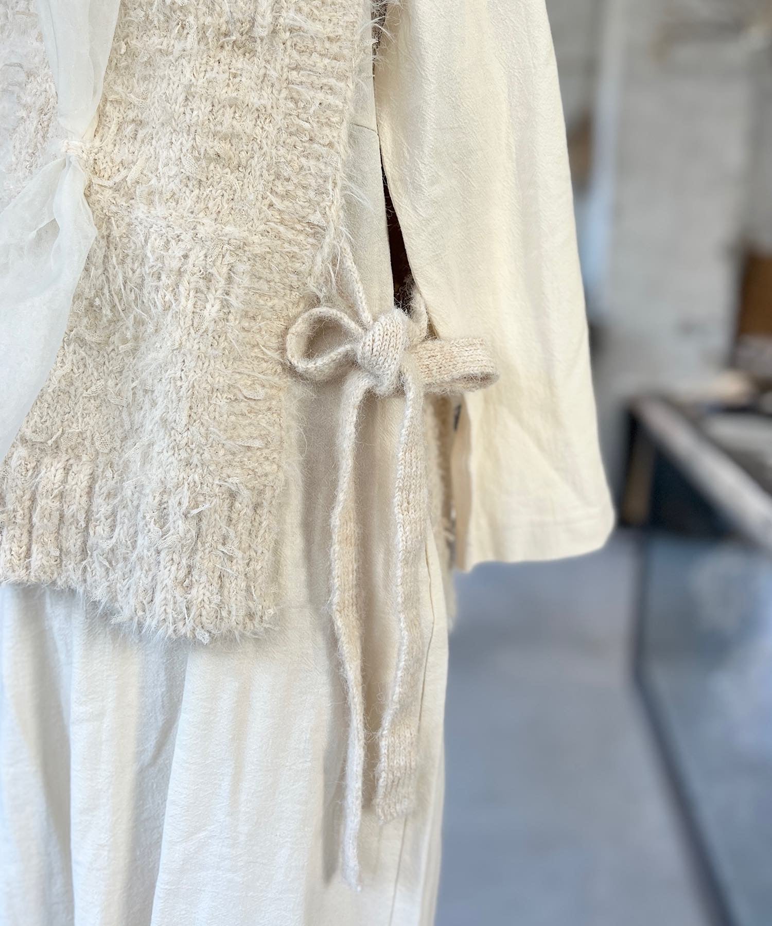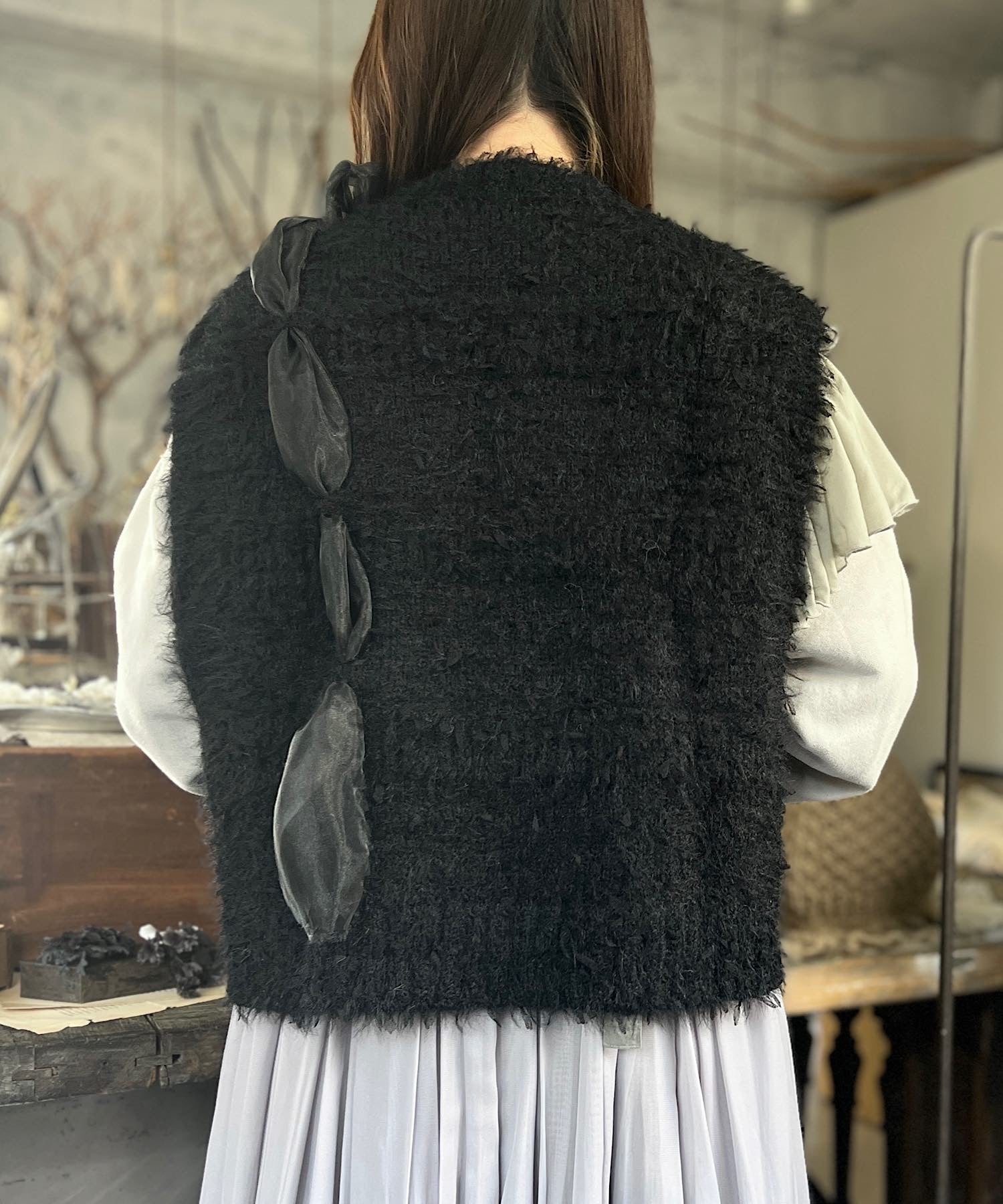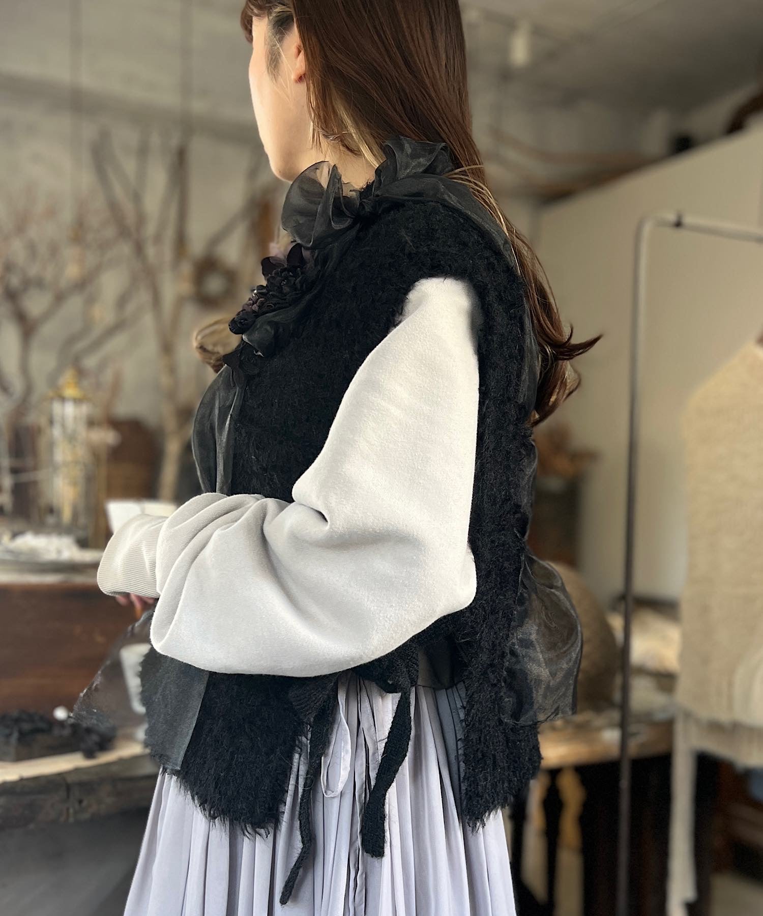 オーガンジーの生地を編み込んだニットベスト。