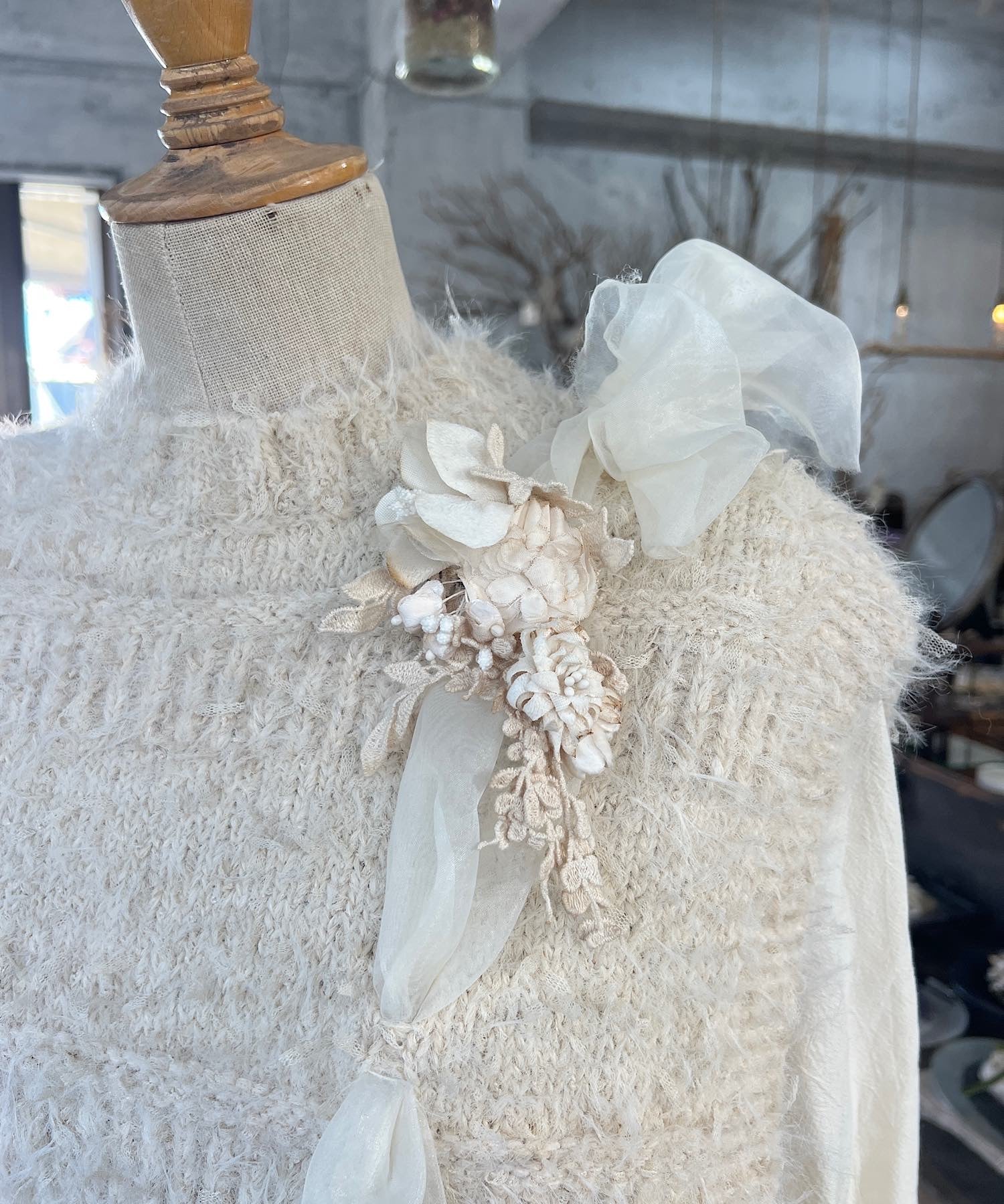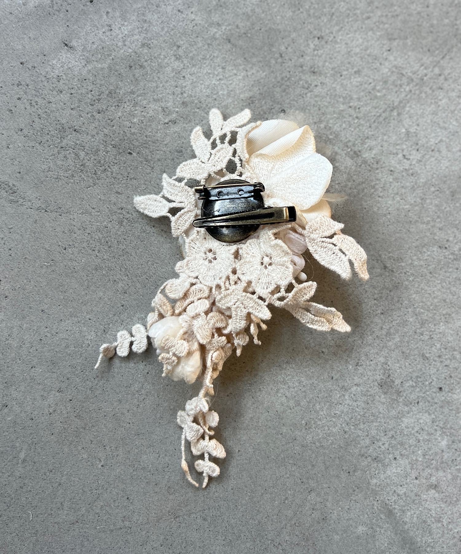 ※布花やレースは手染めをほどこしております。シミのように見える部分がある場合がございますが、染めの色となり、アンティークな風合いを出すためのものです。