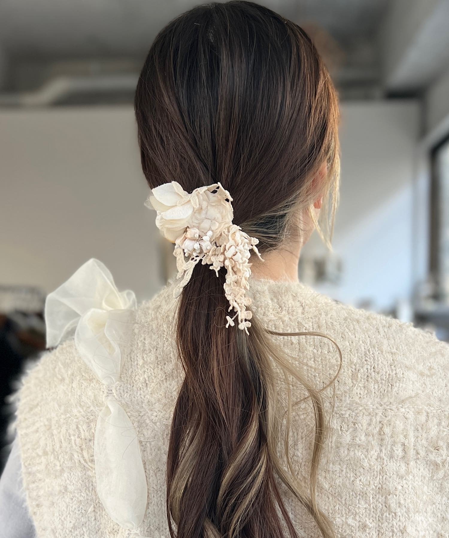 手染めしたお花とレースで