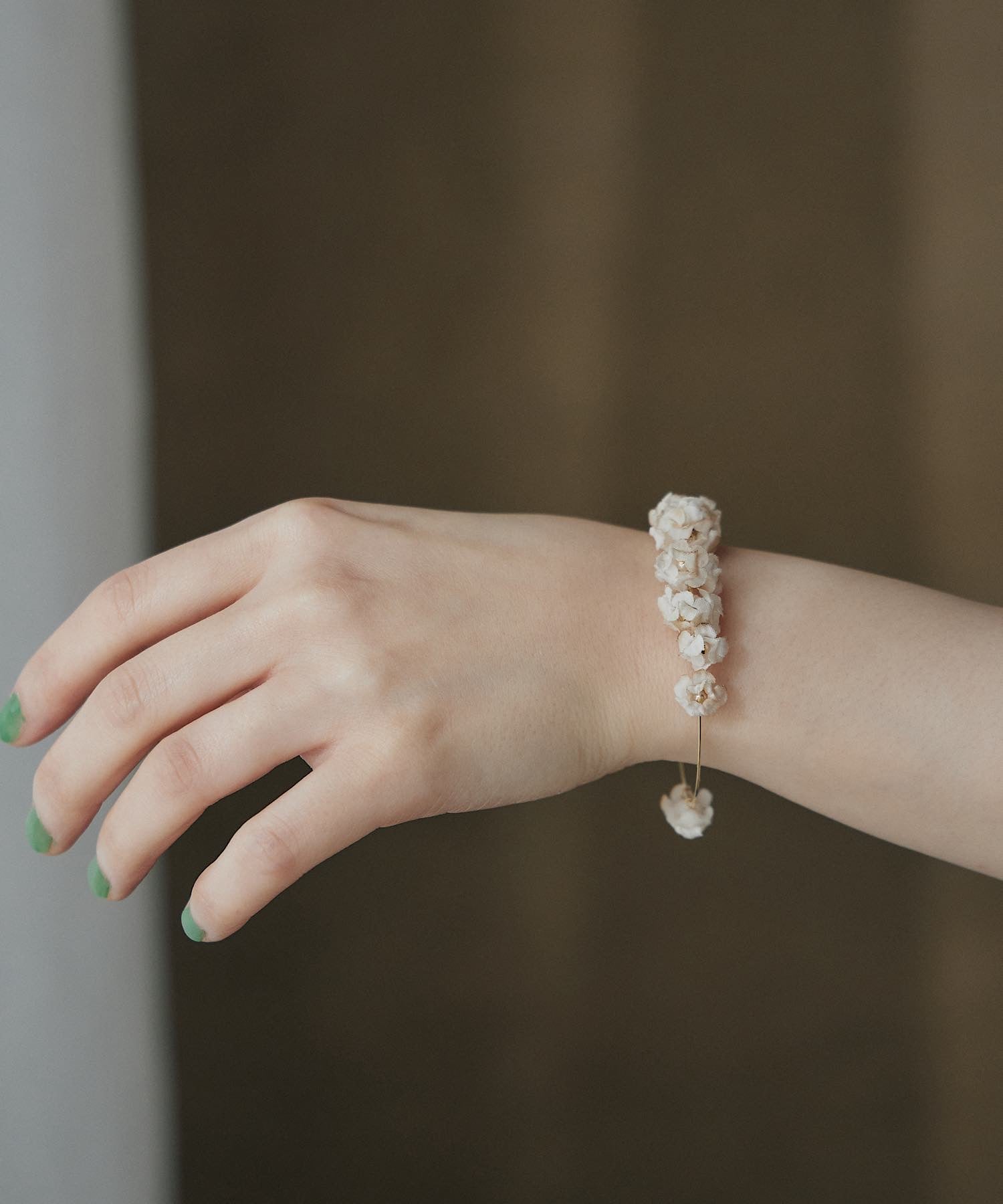 丸みのあるコデマリの花と線の細いワイヤーブレスが
