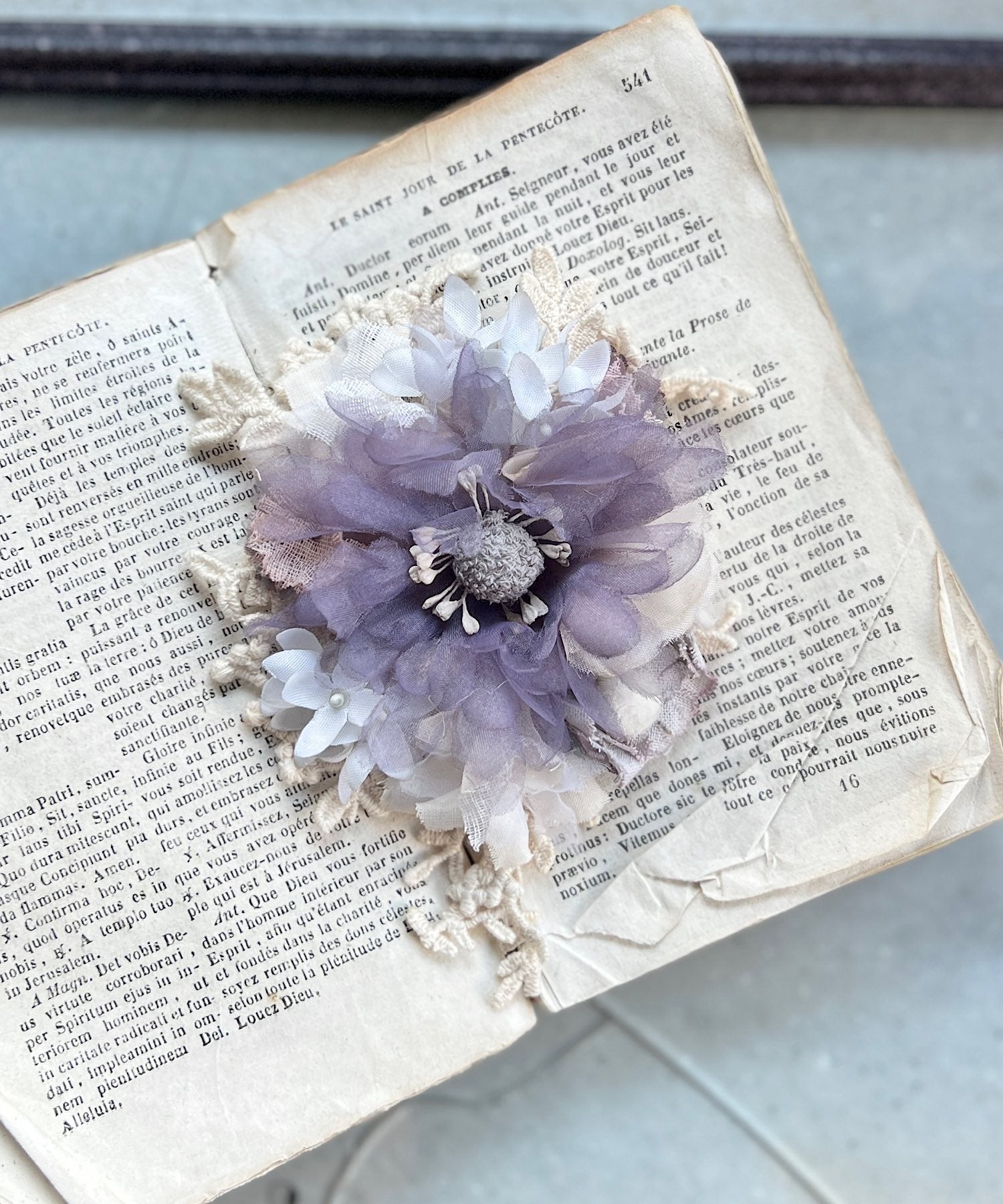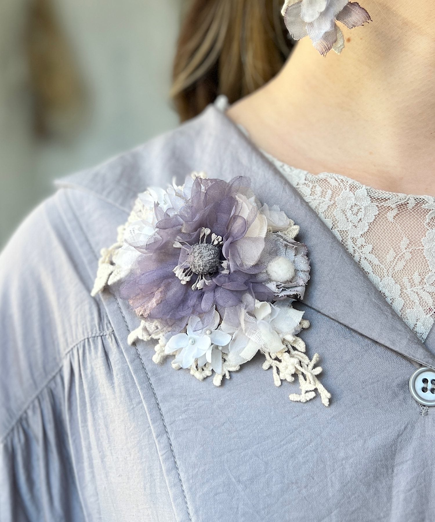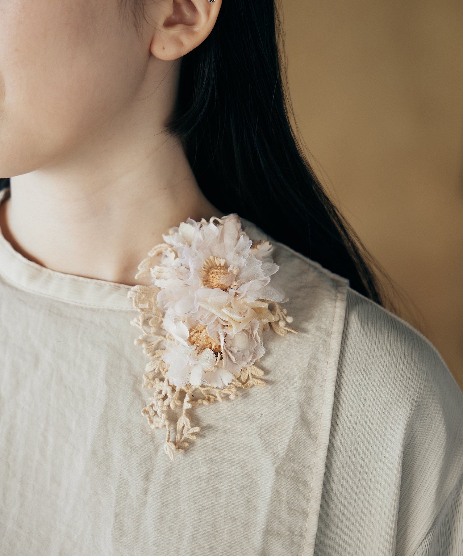※布花やレースは手染めをほどこしております。シミのように見える部分がある場合がございますが、染めの色となり、アンティークな風合いを出すためのものです。