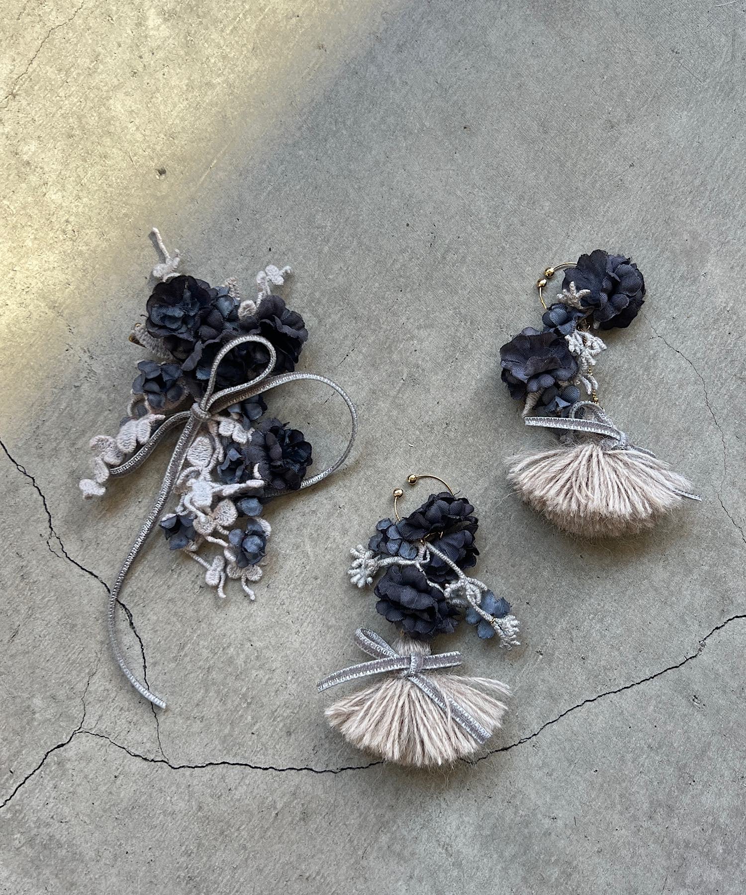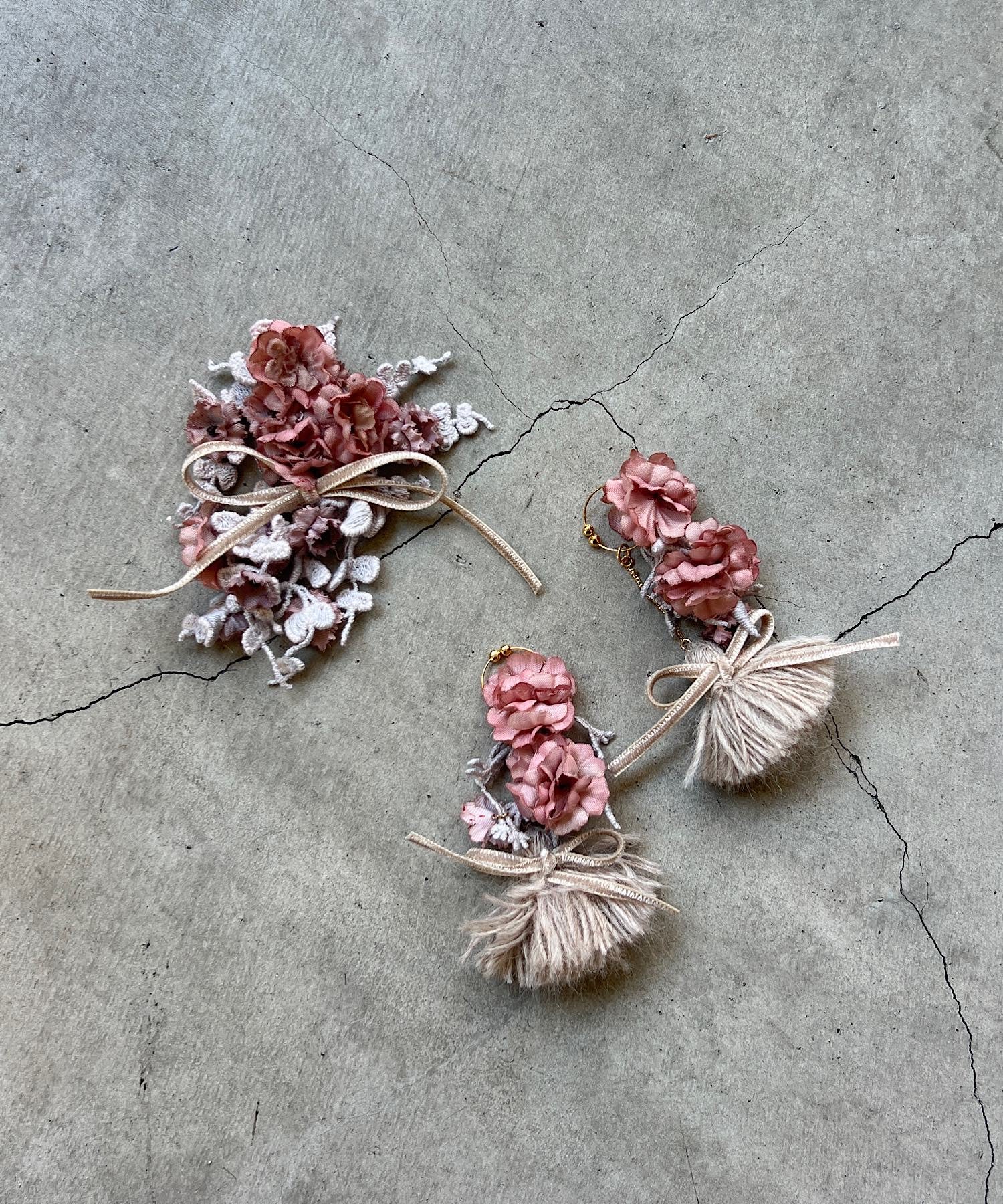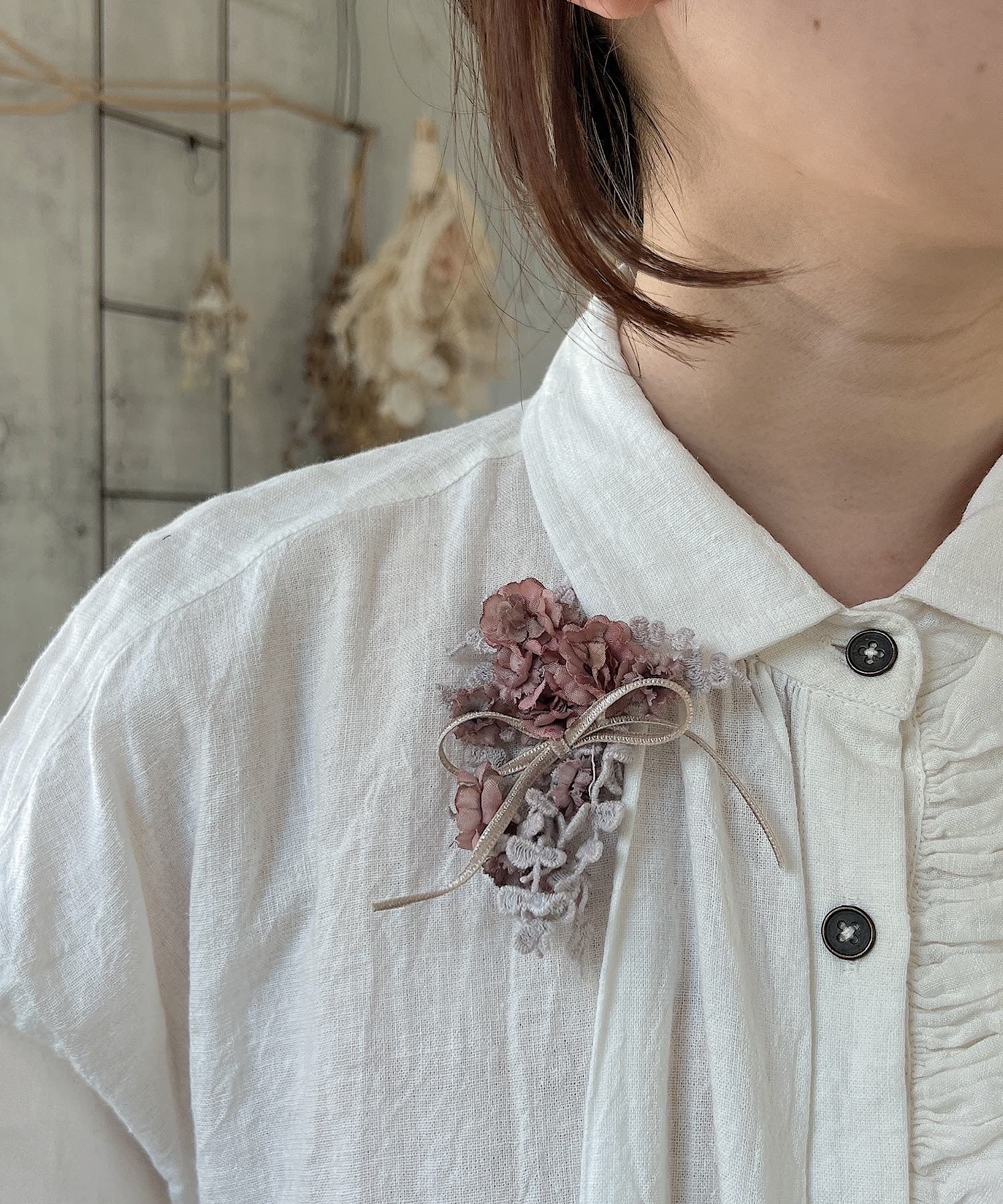 ※布花やレースは手染めをほどこしております。シミのように見える部分がある場合がございますが、染めの色となり、アンティークな風合いを出すためのものです。