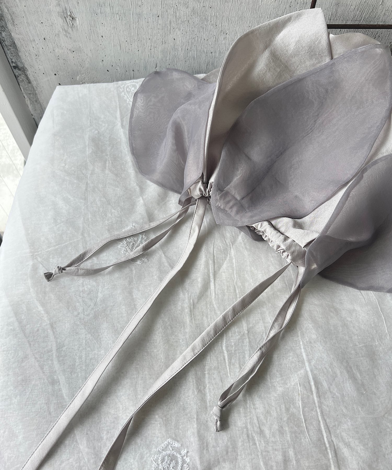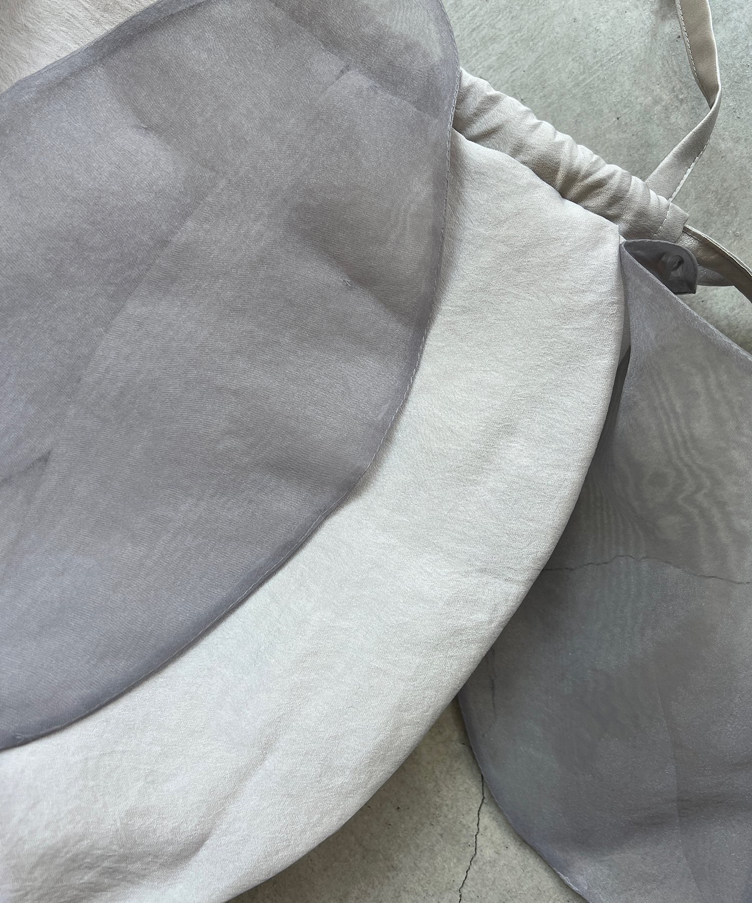 オーガンジーとサテン生地を重ね