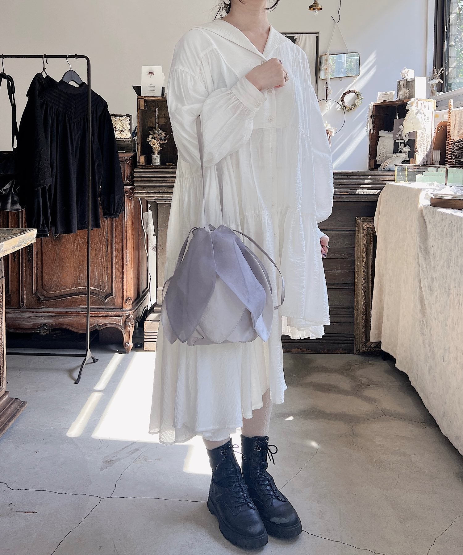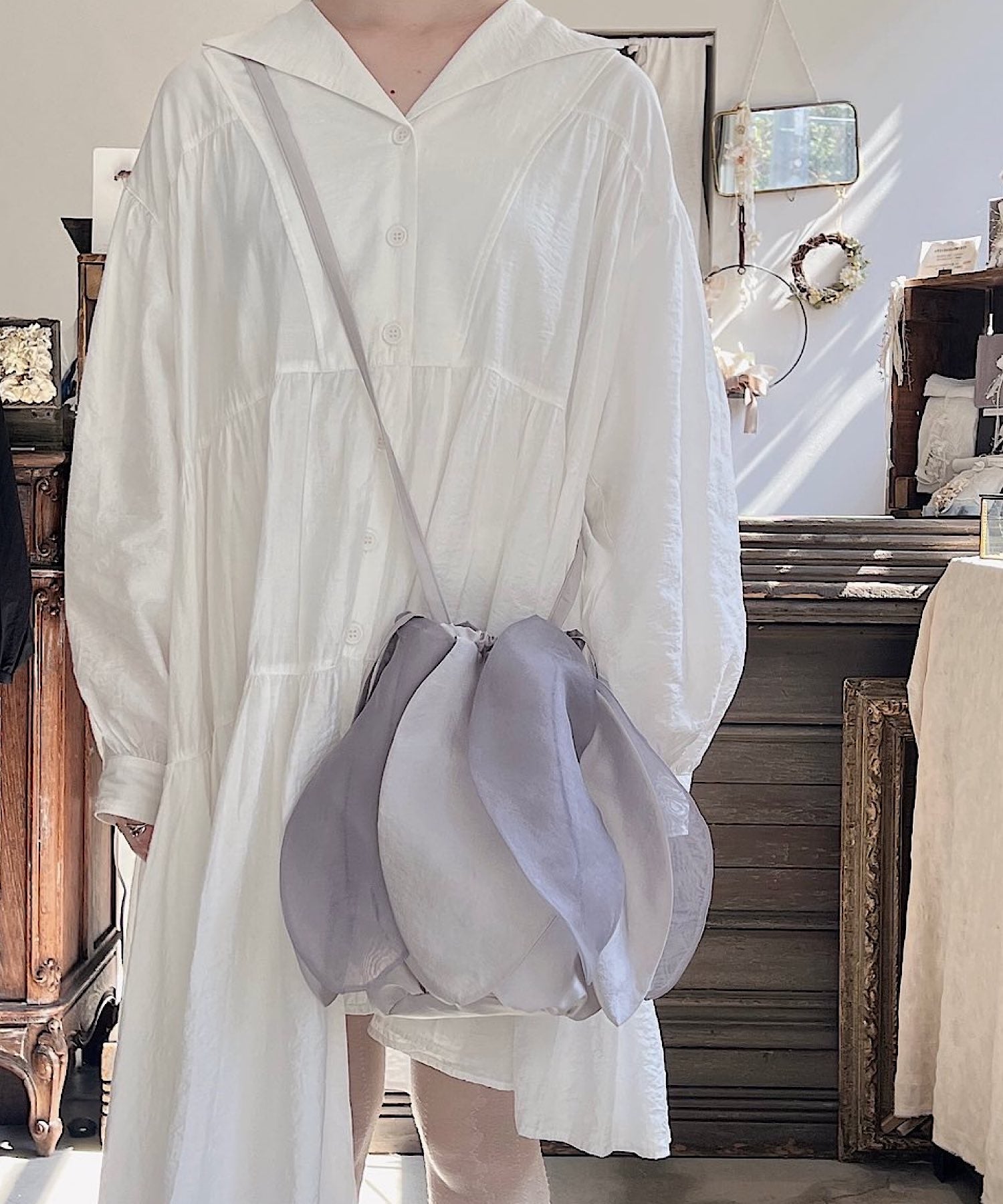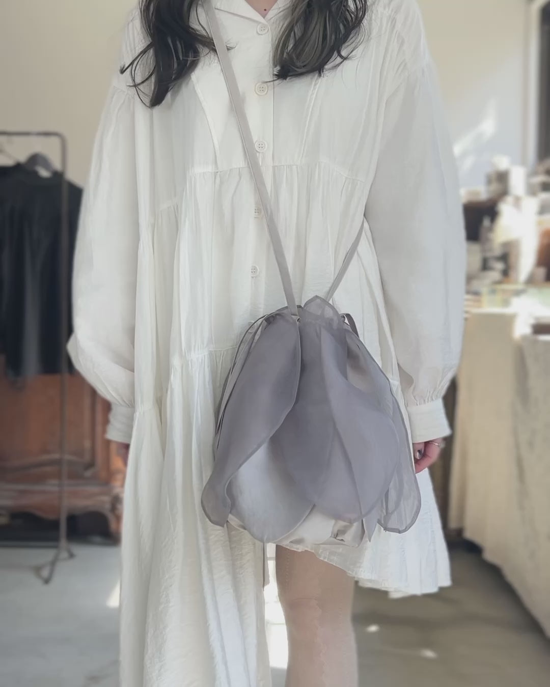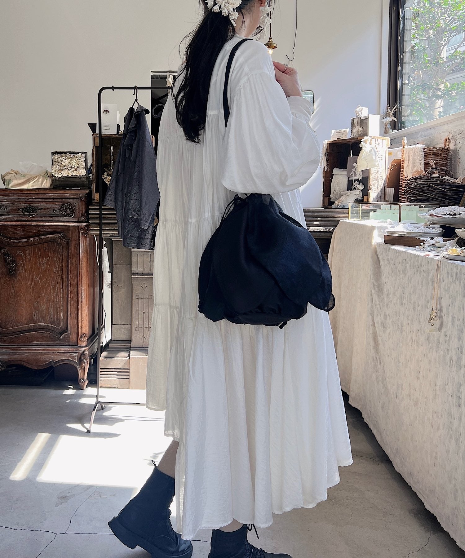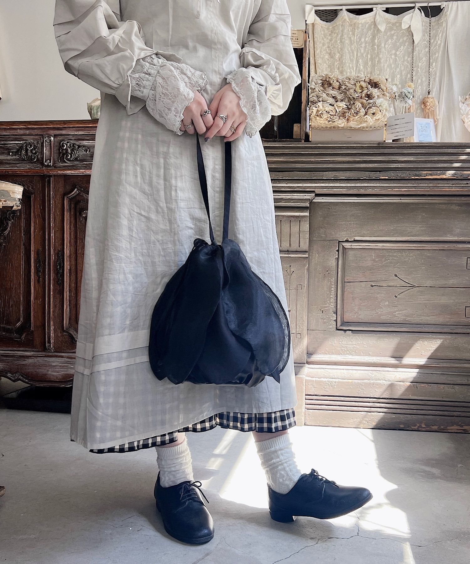 持つたびに花が咲くような、巾着バッグ。