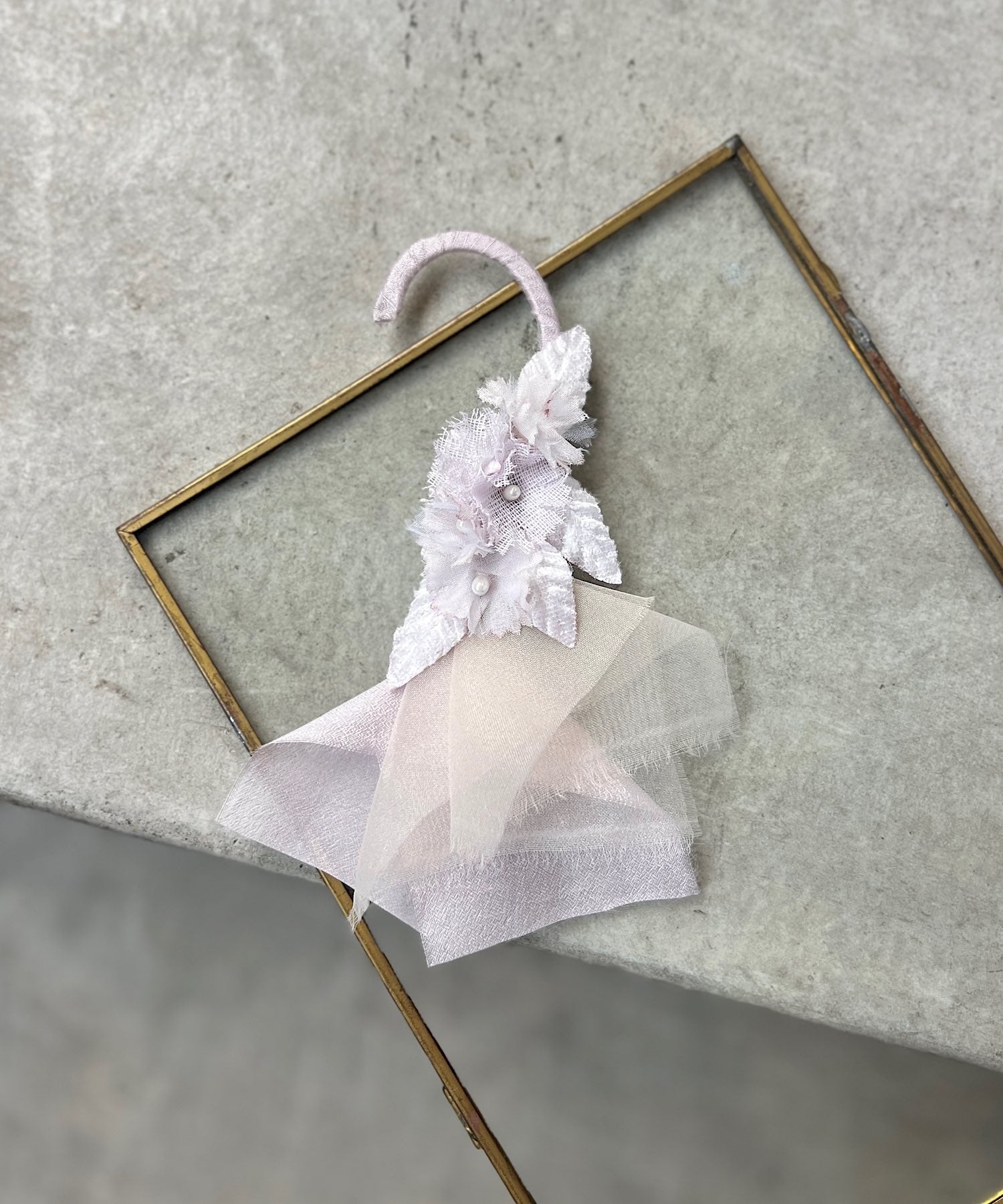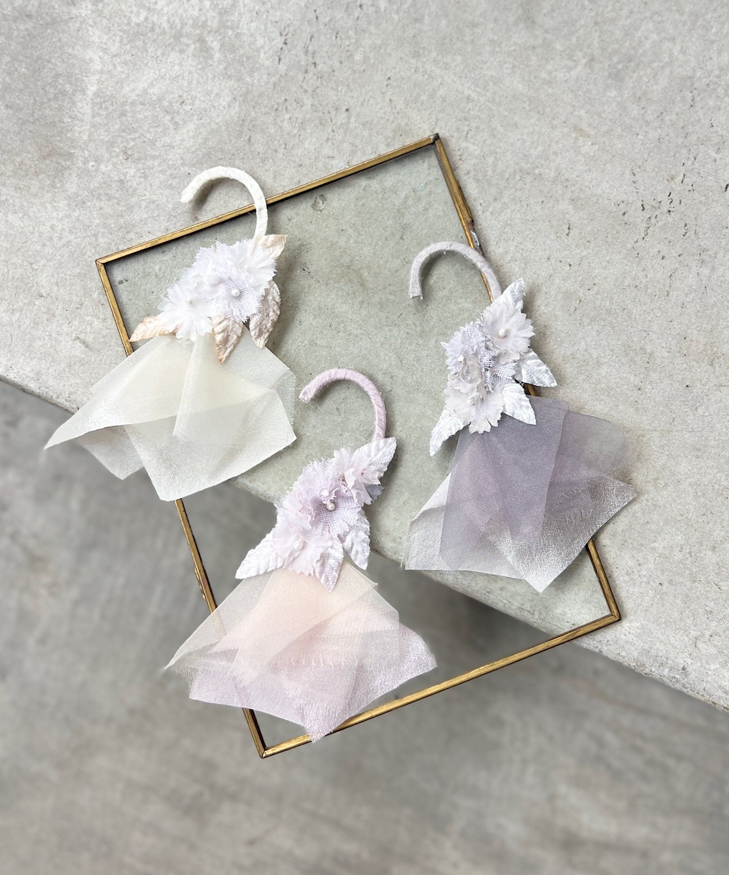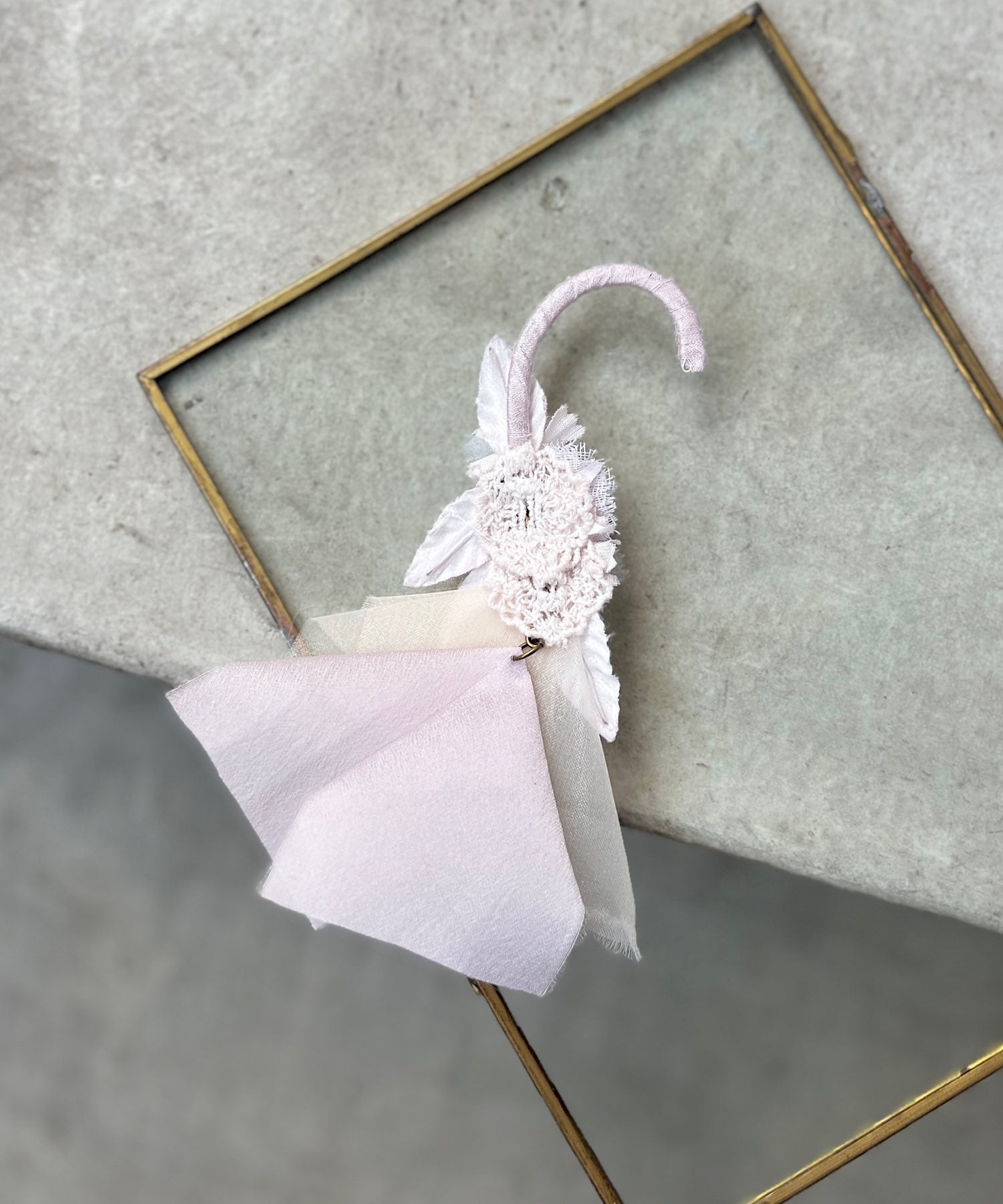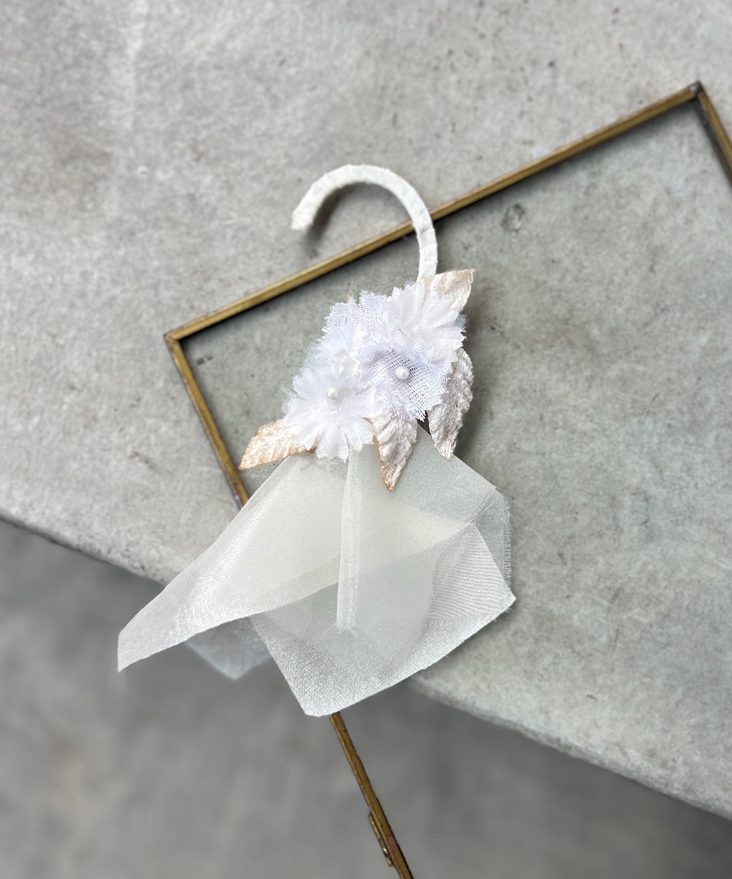 m.soeurオリジナルの花「クララ」と、やわらかなサテン生地を組み合わせた